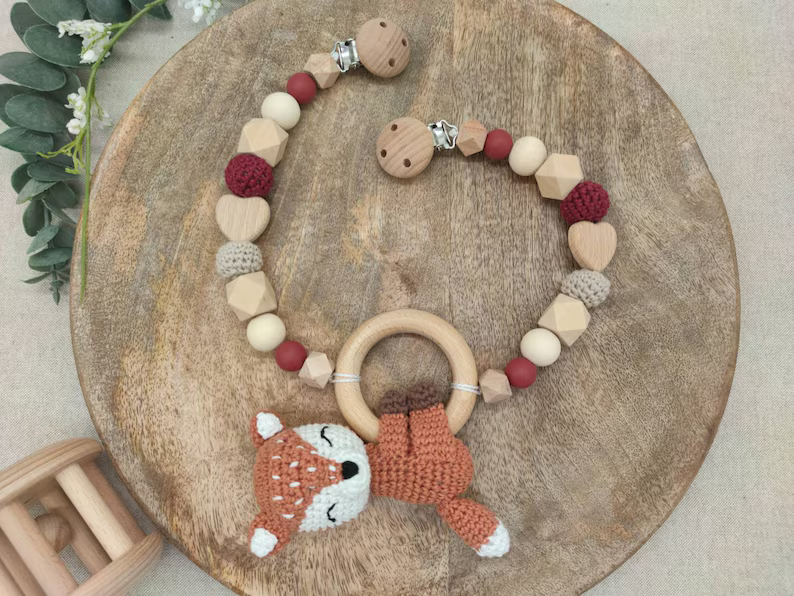 ● The pacifier clips may only be attached to fabric or thin straps. If the material is too thick, the clip may bend! We accept no liability for bent clips!!